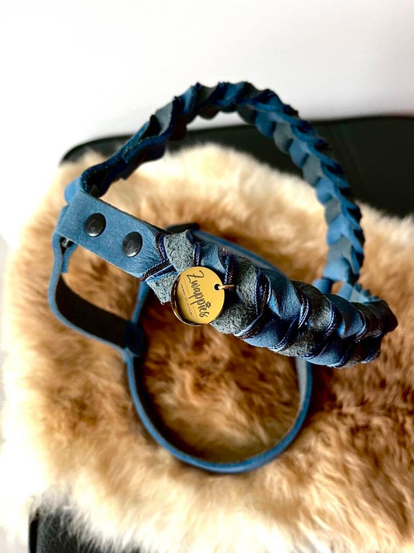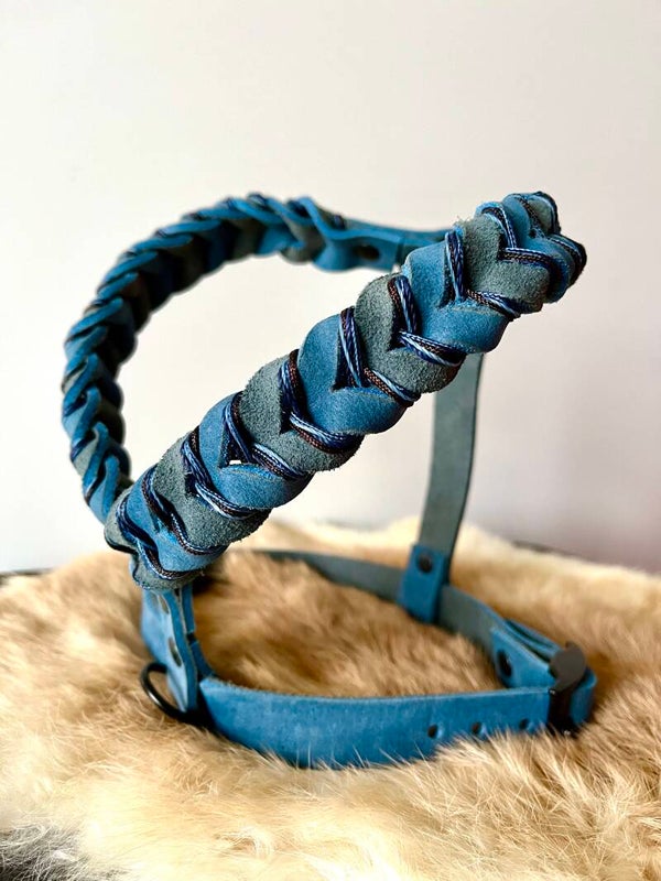 LEATHER harnas collectie wordt net zoals onze halsbanden en leibanden gemaakt met Nubuck (Pull-up Leather).